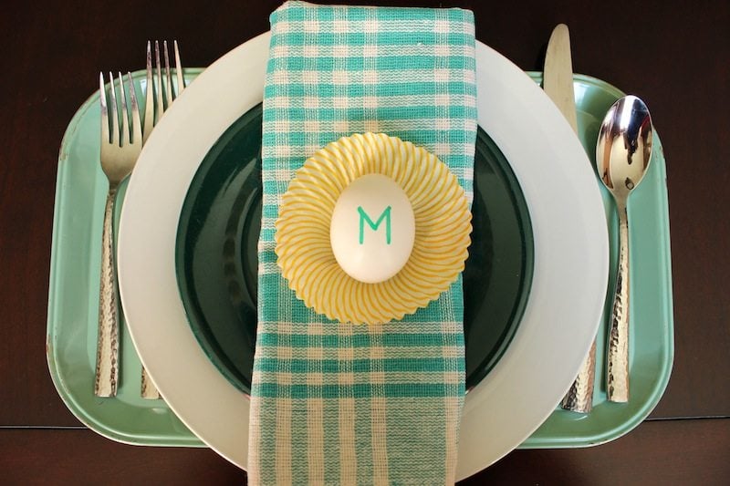 Lay a colorful cupcake liner flat and place your egg on top. It gives the place-setting a polished finish and brings a dash of Spring-time flair.