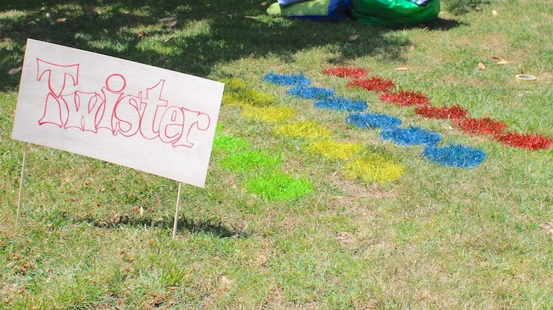 Creating a little seating area around the outdoor twister will definitely make it more inviting. Throwing some outdoor pillows down takes 2 seconds and will encourage your guests to gather around.