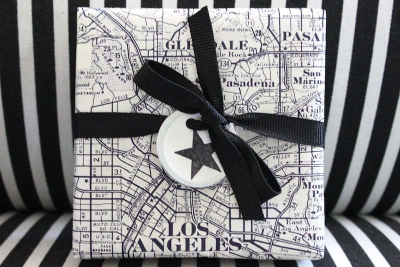 I love maps as wrapping paper because they’re creative and unique and it would be so easy to get ahold of the city your friend is moving to for a going-away gift or someone’s hometown when wrapping up a birthday present.