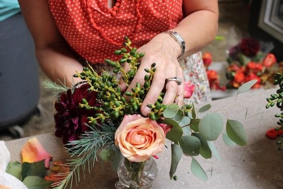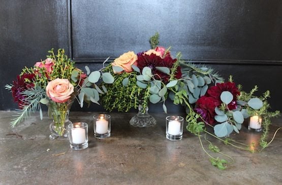 These free form centerpieces are much more forgiving for newbie flower designers, so don’t be afraid… just tell people it’s “deconstructed”.