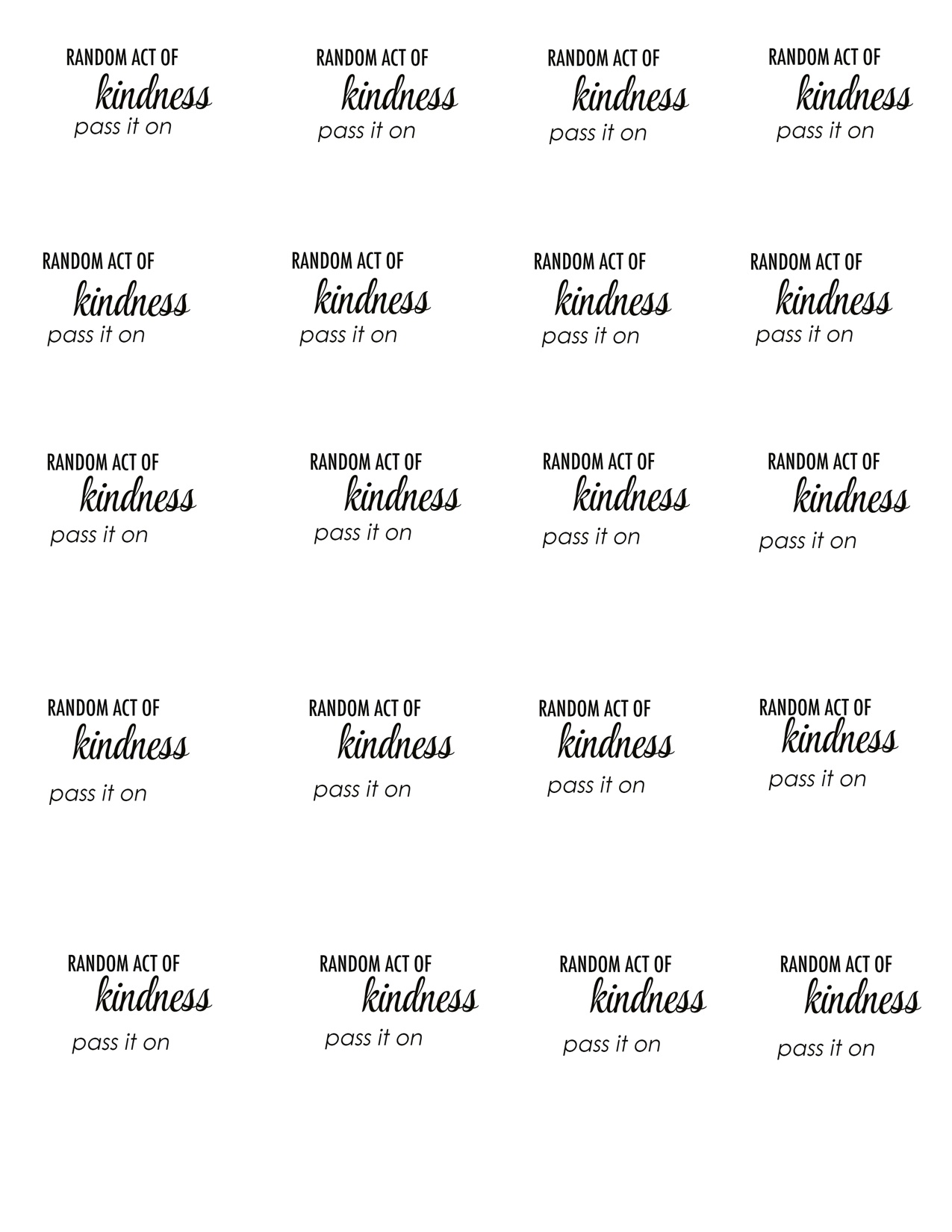 For those of you that are joining our challenge, here is the FREE printable template of these tags. Consider printing them out and keeping a handful in your purse or car… when the inspiration hits you can leave them along with your random act of kindness.