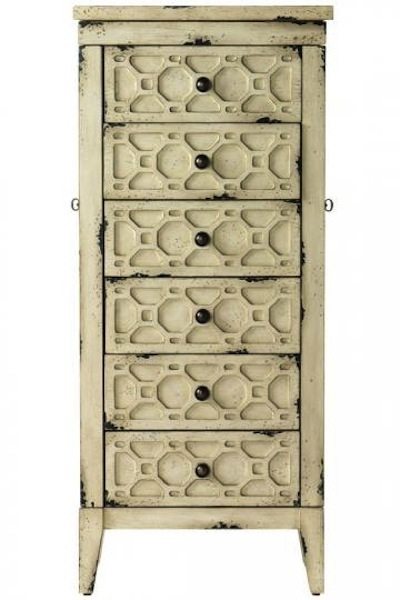 I like the shabby chic details in this armoire. The higher drawers are perfect for hats, scarves and gloves galore!