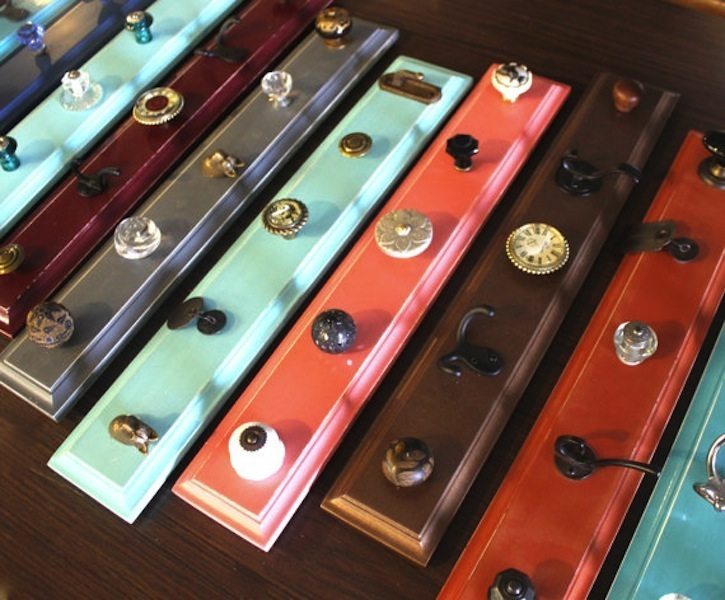 A variety of knobs and pulls from Anthropologie are a great way to display long necklaces as shown by She Dreams Big.