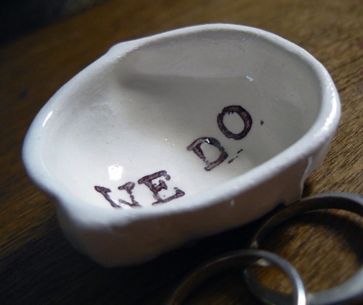 I use my personalized handmade ring holder like this one for my wedding rings at night.