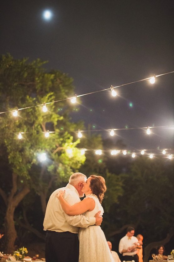 An oldie, but a goodie… just string up Christmas lights or carnival lights overhead. We hung some over the top of the dance floor when my sister Melody got married and it was gorgeous. You can see all the fun details of her wedding HERE.