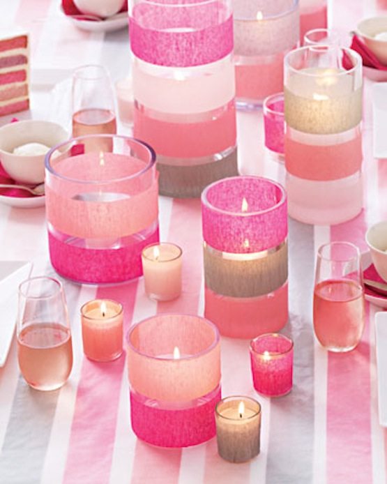 Simple and inexpensive… just wrap streamers around vases and votives. Get the tutorial from Martha HERE