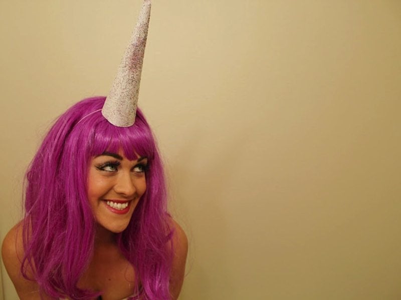 All That Glitters: Construction paper, glitter and a thin headband make a perfect unicorn horn. Allow 10 minutes to dry to avoid getting glue in your hair! Wear a brightly colored top or colorful jeans because, that’s what a unicorn would wear, right?