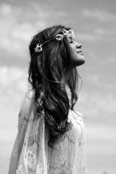 Flower Child: Raid your closet for your most boho-inspired top. Loosely curl hair and keep makeup natural. Better yet, go bare-faced! Grab a handful of flowers (with long stems if possible) from your yard and make a flower halo by tying the stems together.