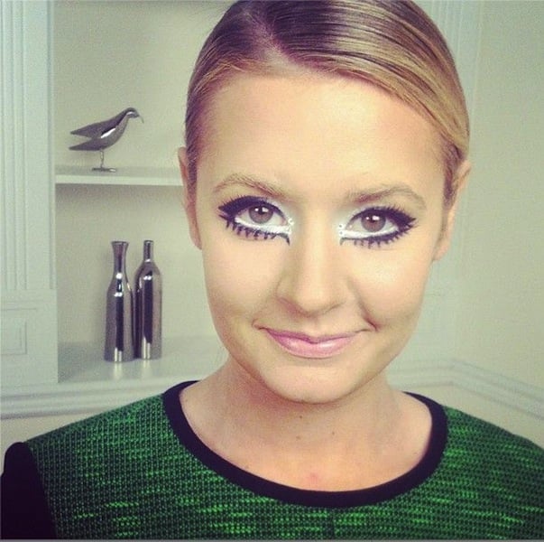 Twiggy: Make the perfect lashed-out look with severe white and black eyeliner. Pair with flared jeans and a colorblock sweater. Complete the look with a nude or matte lip. Quick tip for pictures…grin, don’t smile. So Twiggy!