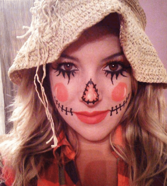 Scarecrow: You are 4 items away from the cutest scarecrow. Gather a plaid shirt, straw beach hat, black eyeliner and coral lipstick to create this last minute costume. Have room to spare in your shirt? Stuff with hay or straw for a little extra crow-like touch.