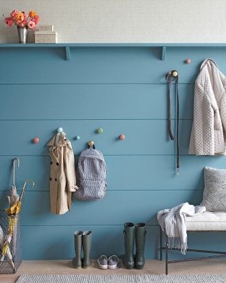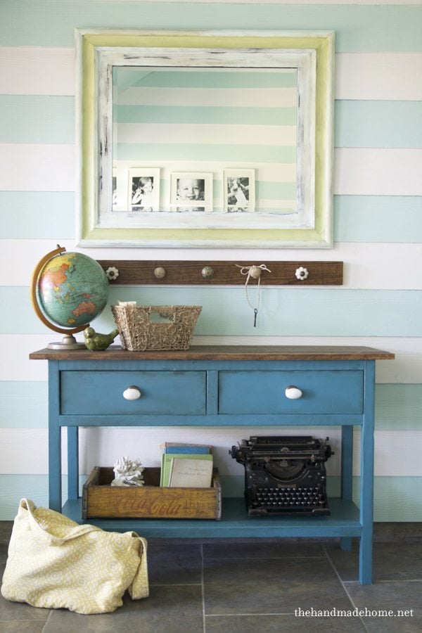 I love how two old pieces of wood and some cabinet knobs combined to make this entry space shine!
