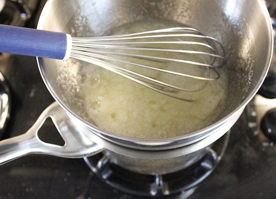 2. Constantly whisk mixture until sugar has dissolved and solution has reached 160 degrees F.
