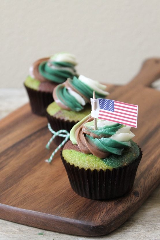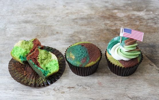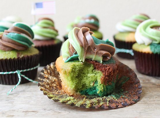 Sharing food is one of the best ways to show someone you care. How about whipping up a batch of these camouflage cupcake for your local veterans?