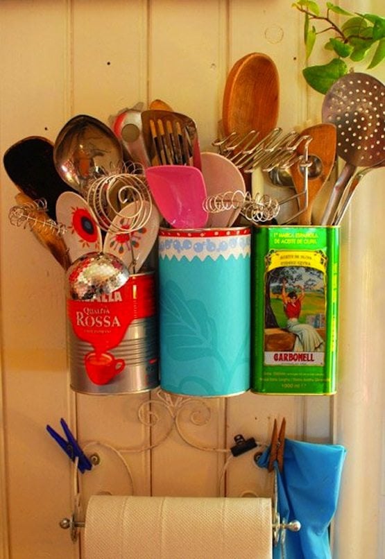 The Kitchn also shows us that recycled cans can tidy up your cooking utensils. I’m loving these vintage looking tins!