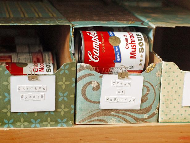 We’re all familiar with the boxes that soda pop comes in, right? Well those same boxes are perfect for repurposing into DIY can storage for your pantry all year long! Then She Made… repurposed these boxes by using Mod Podge and gluing on some decorative paper.