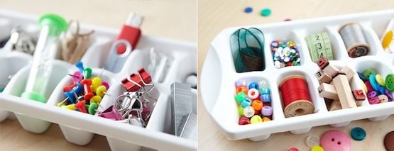 It’s no secret that ice trays double as easy organization for little items like office or craft supplies, small jewelry pieces or even individual eyeshadows. For other ideas on how to repurpose your extra ice trays, check out Home Made Simple’s list on new uses for ice trays!