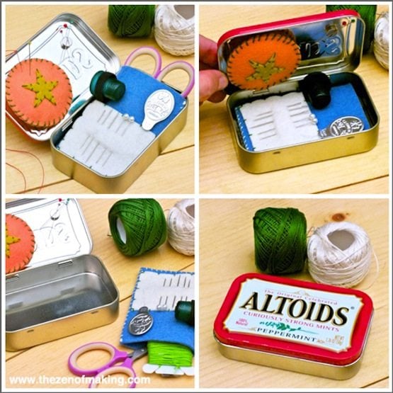 Next time you’re about to toss an empty candy tin, think again! From creating a mini embroidery kits like The Zen of Making did above to using this tin for paperclip storage in your desk drawer, this sturdy tin container can be adapted to store just about anything.