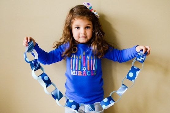This little one is so adorable with that decked out shirt and all! A countdown to Hanukkah with this classic paper chain from Amy Atlas Events is a simple way to get the kids excited for the holiday.