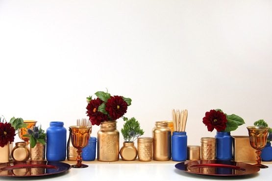 This Thankgivukkah centerpiece by Studio DIY is definitely hitting the mark for me. Some gold, royal blue and deep red is my favorite color palette for the occasion.