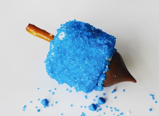 A little dreidel-shaped snack for the kids to help put together. Marshmallows, sprinkles, pretzel sticks, and chocolate kisses… This is a child’s dream! Check these out on Hostess with the Mostess.