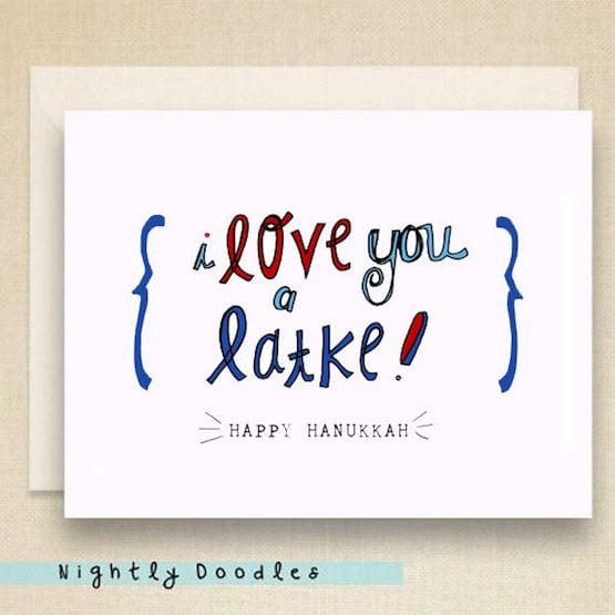 Just had to share this other adorably funny card on Etsy. “I love you a latke!” is a perfect little saying for your loved ones. 🙂