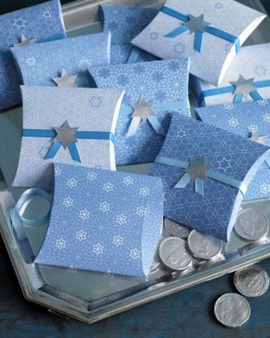 I’m loving these pretty powdery blue favors made from card-stock boxes. See how to make them at home on Martha Stewart.