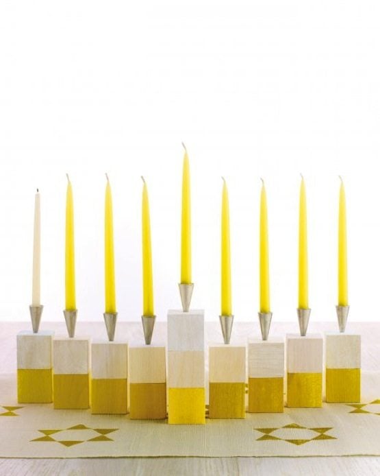 A crafty modern wooden block menorah is easy to make at home with the kids. For the full tutorial, check it out at Martha Stewart.