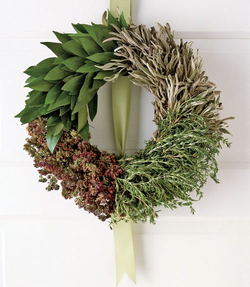 A fresh herb wreath will keep your home smelling great all throughout the winter months.