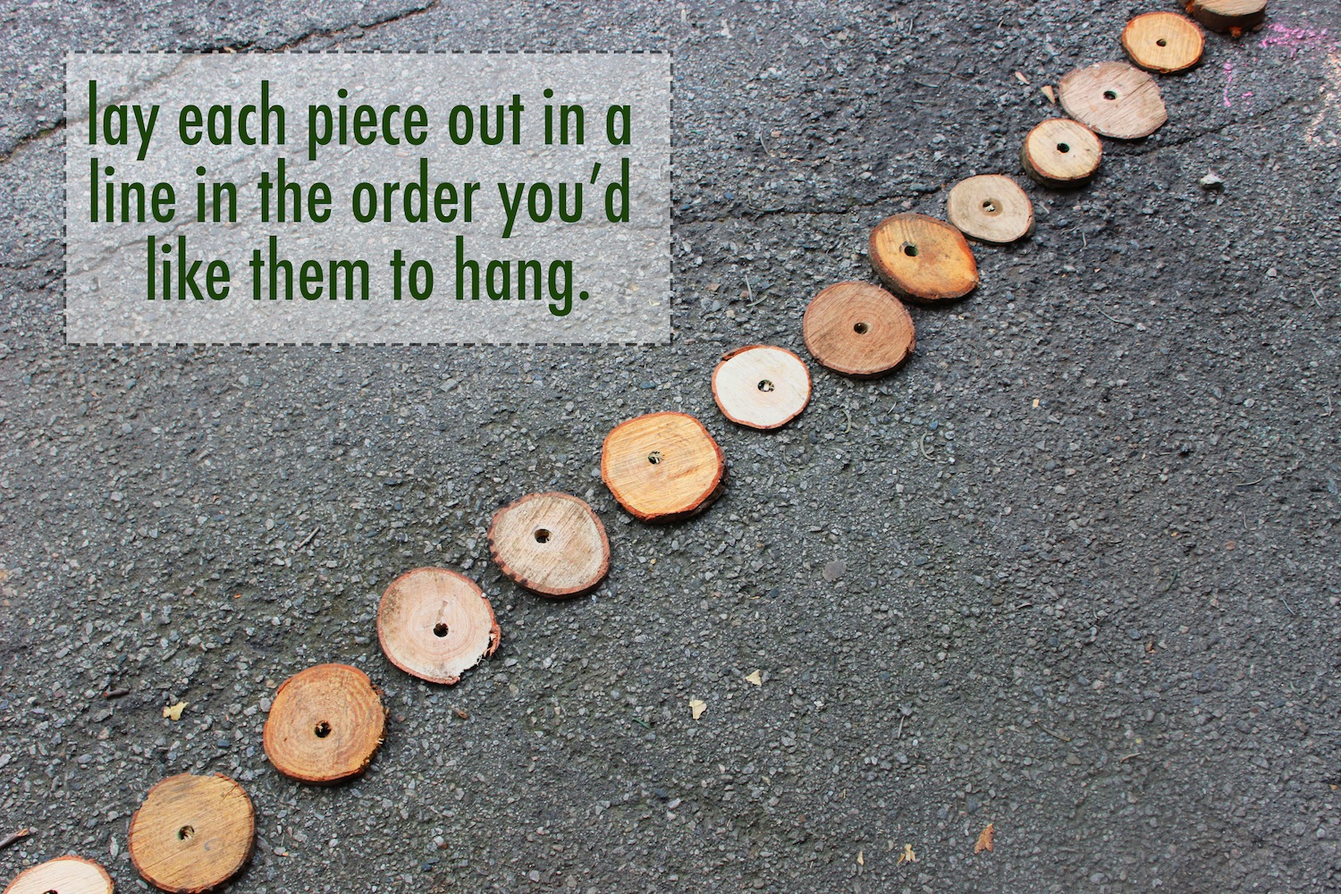Once you lay out the wooden pieces you can swap some in and out until you get a look you really like. I suggest mixing and matching big and little and various shades of color.