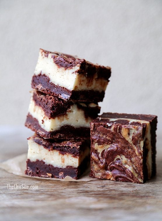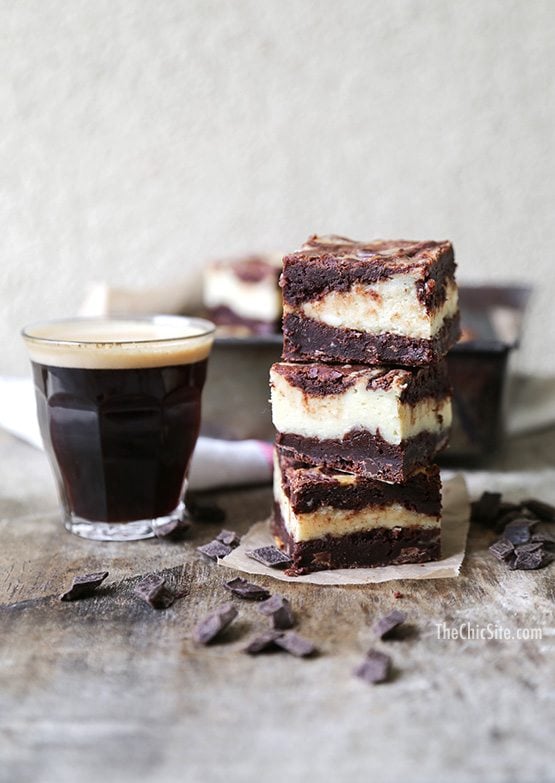 It combines two desserts into one! Everyone loves cheesecake and who can say no to a brownie?! I added in some espresso powder to heighten the chocolate flavors. While the espresso flavor isn’t very pronounced, it’s there to make your chocolate taste more chocolately. This pairs well with dark beers, red wines, and of course, coffee.