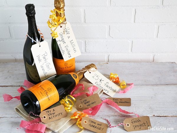 For us it might be the day Party Girl comes out or when we get 500,000 viewers to the site in a single month but for you it might be when you lose that last 10 pounds or when you get promoted at work, or even better, when your son is finally potty trained! We tend to run right by all these things we’re achieving without commemorating them properly, so if you’ve got some champagne in your fridge like I do, make yourself some tags as a reminder of the goal and the celebration that follows it!