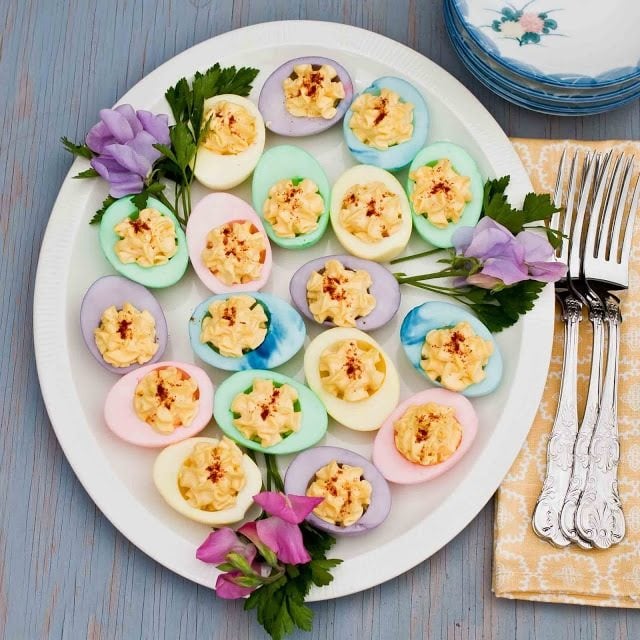 Everyone makes deviled eggs on Easter, but these pastel deviled eggs from Foodjimoto are just too cute!