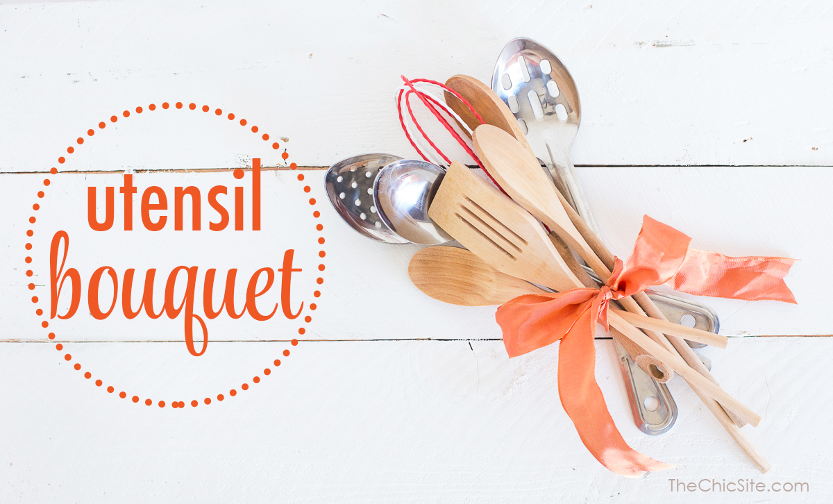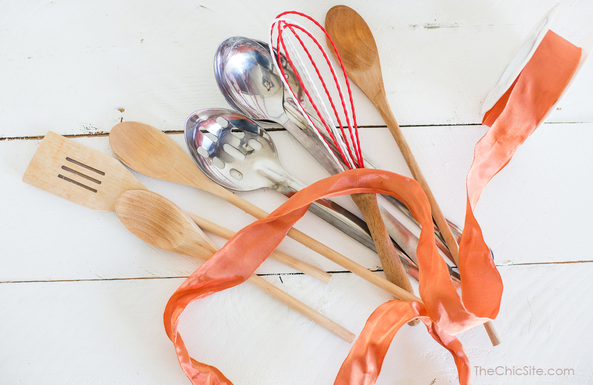 New Kitchen Utensils – I suggest sticking with matching colors, I like wood and stainless steal because I think they’re prettiest in bouquet-form!