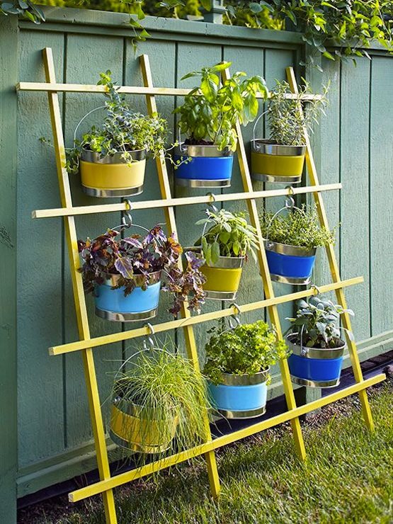 I like the way Tricia from Upcycled Stuff created a space saving stacked herb garden with painted cans.