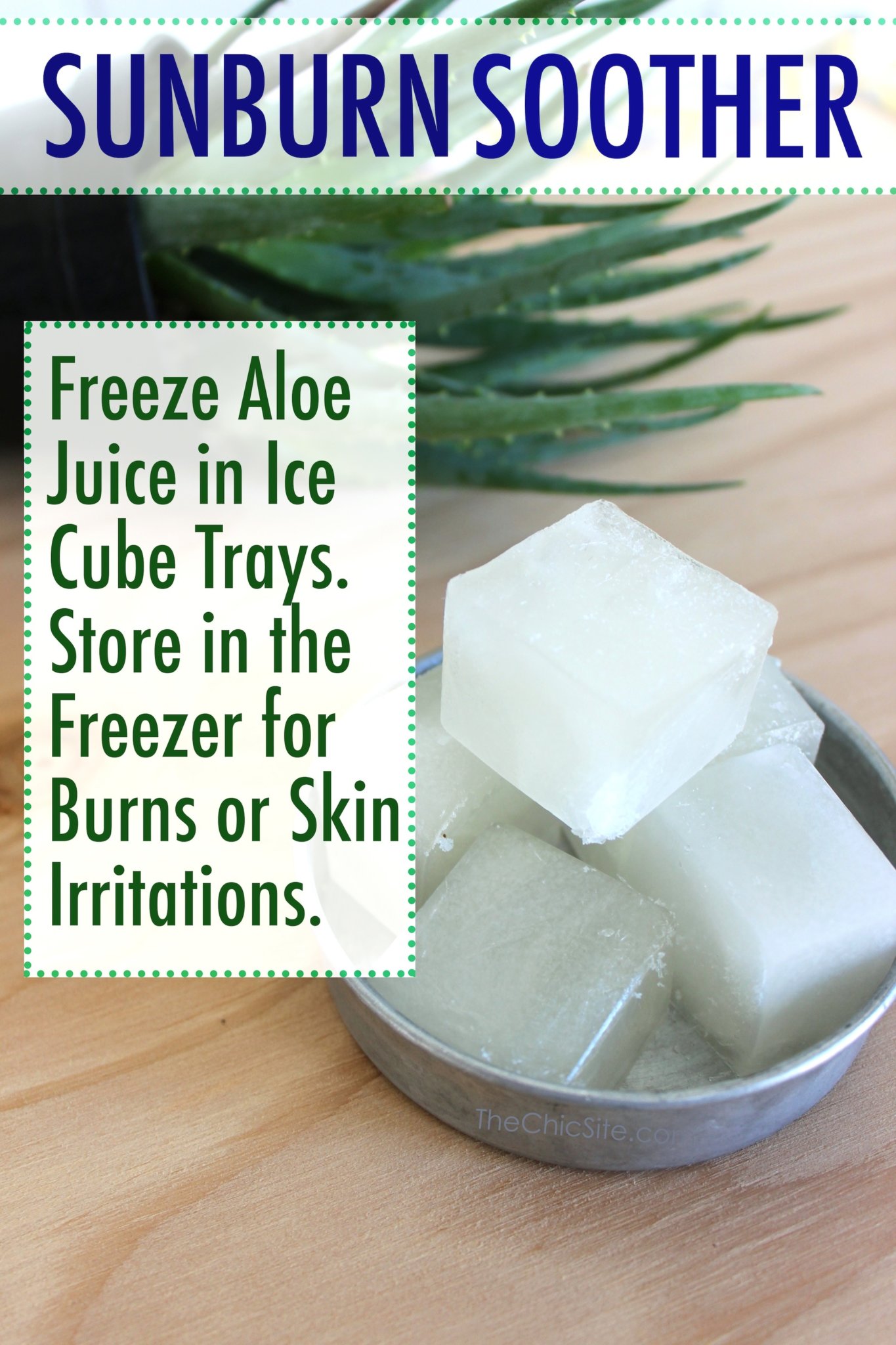 This is one of those ideas that is so simple, yet so clever I almost get mad at myself for not thinking of it sooner! Freeze some aloe juice in an ice cube tray and store in the freezer for DIY Sunburn Relief whenever you need it.~Rachel