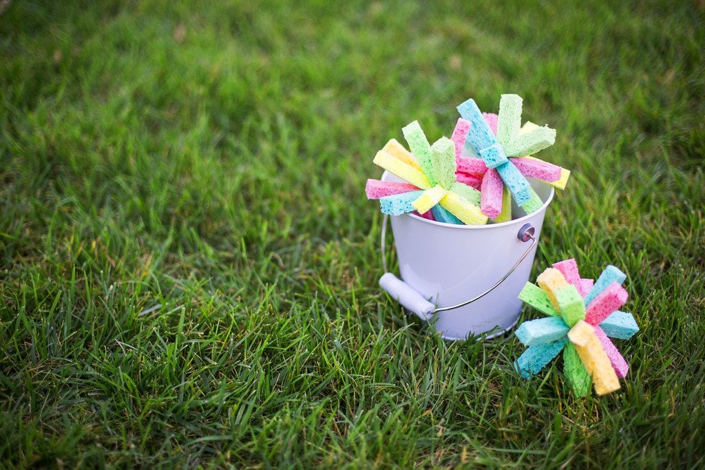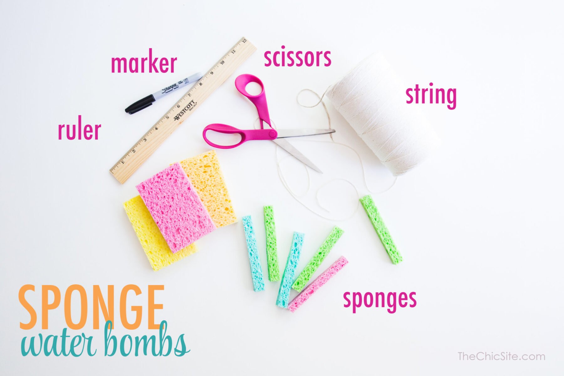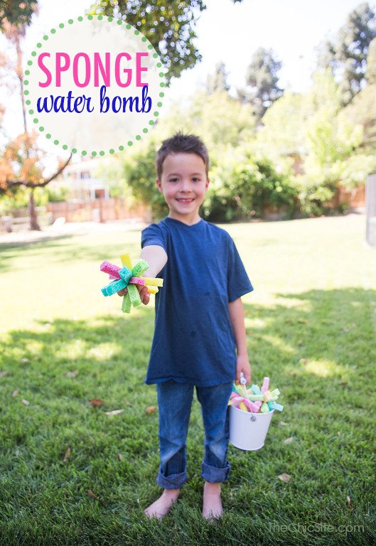 My boys are obsessed with water balloons. It’s their favorite summer activity hands-down… what is it with little boys loving the idea of launching some sort of bomb at their brother? Unfortunately they aren’t quite old enough to tie the balloons off which means that Dave and I will spend approximately 15 hours filling a bucket with water balloons that the boys can go through in 0.5 seconds. So this year, I’m crafting a water bomb that’s reusable! Basically you just make a pom pom with strips of sponge and voila… Sponge Water Bomb!