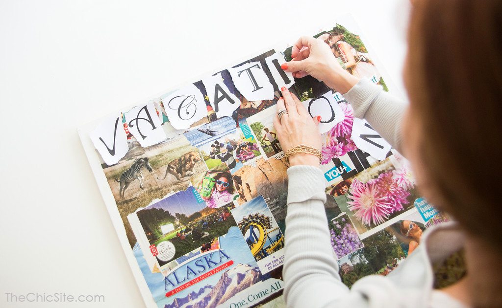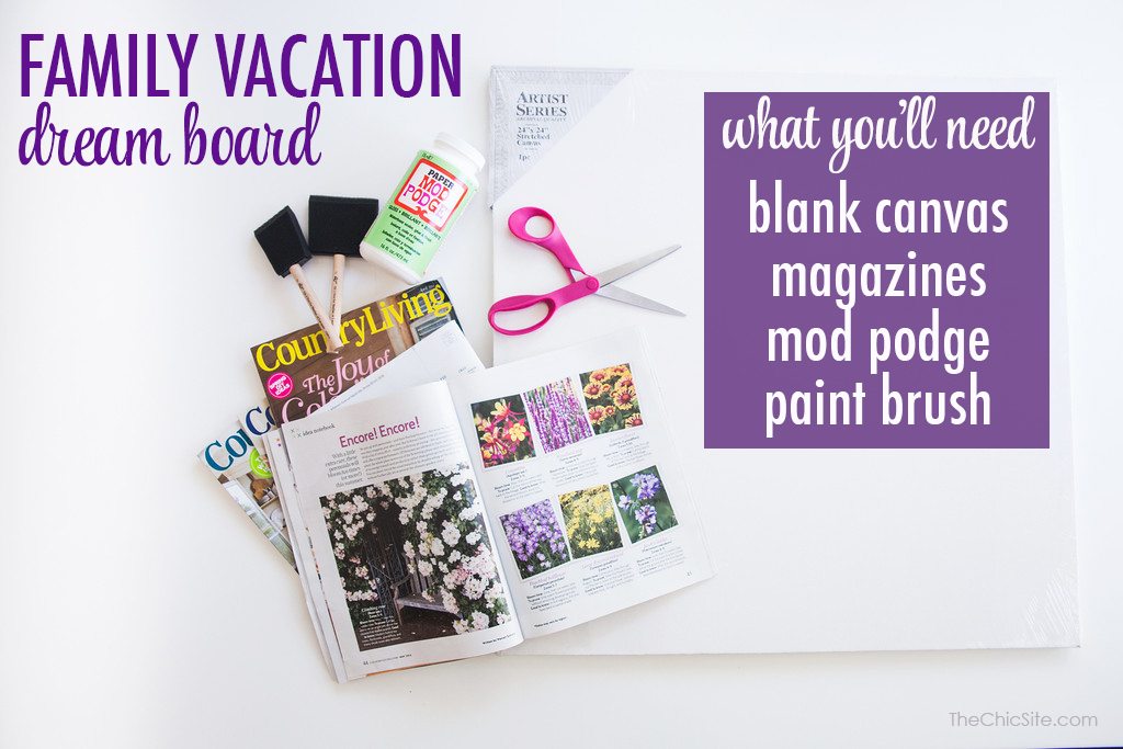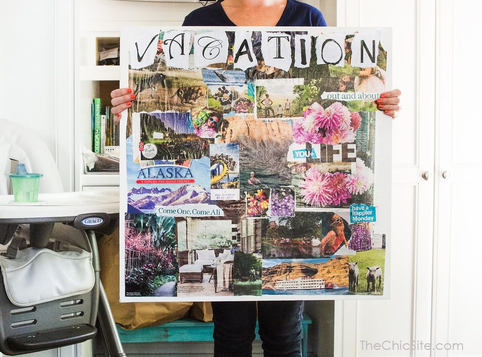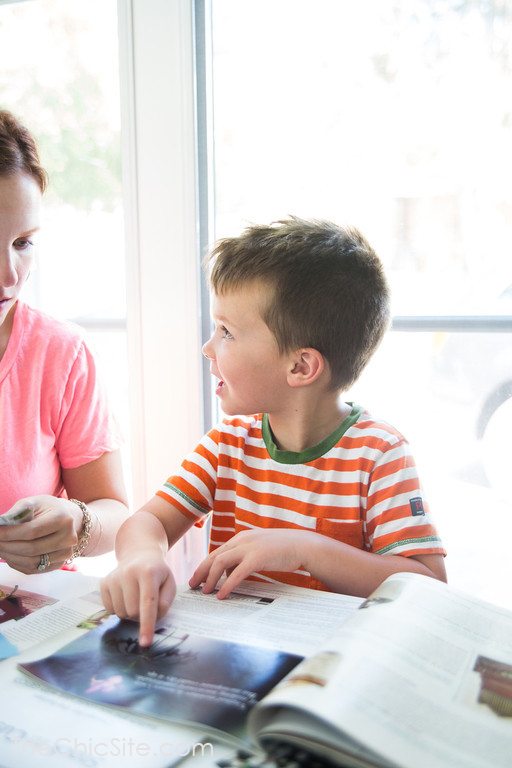 We worked together to create a Dream Vacation board… basically I just grabbed a ton of old magazines and encouraged the boys to tear out any pictures that looked like something they’d like to do on vacation. Their choices included: swimming, roller coasters, drinking yogurt from one of those squeezy pouches and a picture of a zebra chasing a lion. Not totally sure how all of those apply, but you know what, this is their dream board too so who am I to judge? My pictures involved laying on the beach, hiking, several different kinds of cake and a perfect looking glass of white wine… hubby wasn’t there to help us that day, but I assure you, he’d be just as excited about that wine and cake as I am.