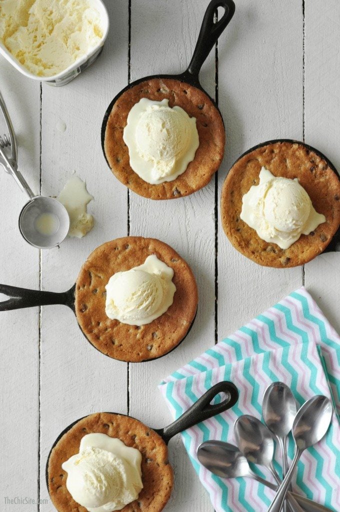Sometimes—especially on Fridays after work—I like to make Chocolate Chip Cookie Skillets. They’re so easy to create, all you have to do is take chocolate chip cookie dough, press it into mini skillets (we got ours at Sur La Table), bake them off, and top them with a few scoops of ice cream right out of the oven.