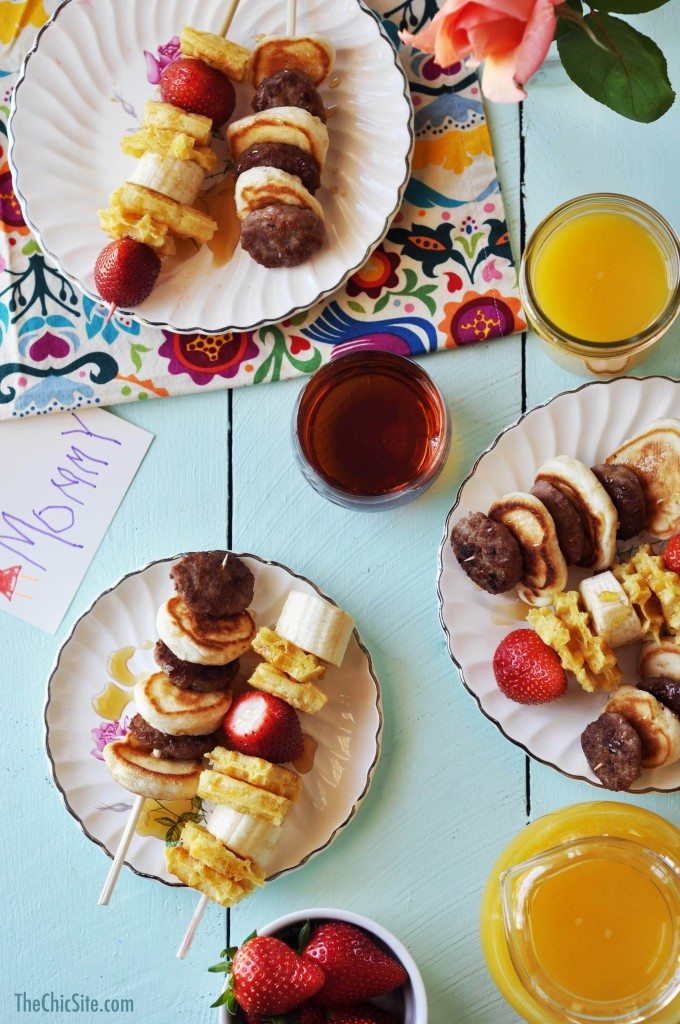 Feel free to swap out the fruit for your favorite, or mix and match the waffles with the sausage or the pancakes with the fruit. These are so easy to make that you can whip up a variety for moms to choose from. Happy Mother’s Day!
