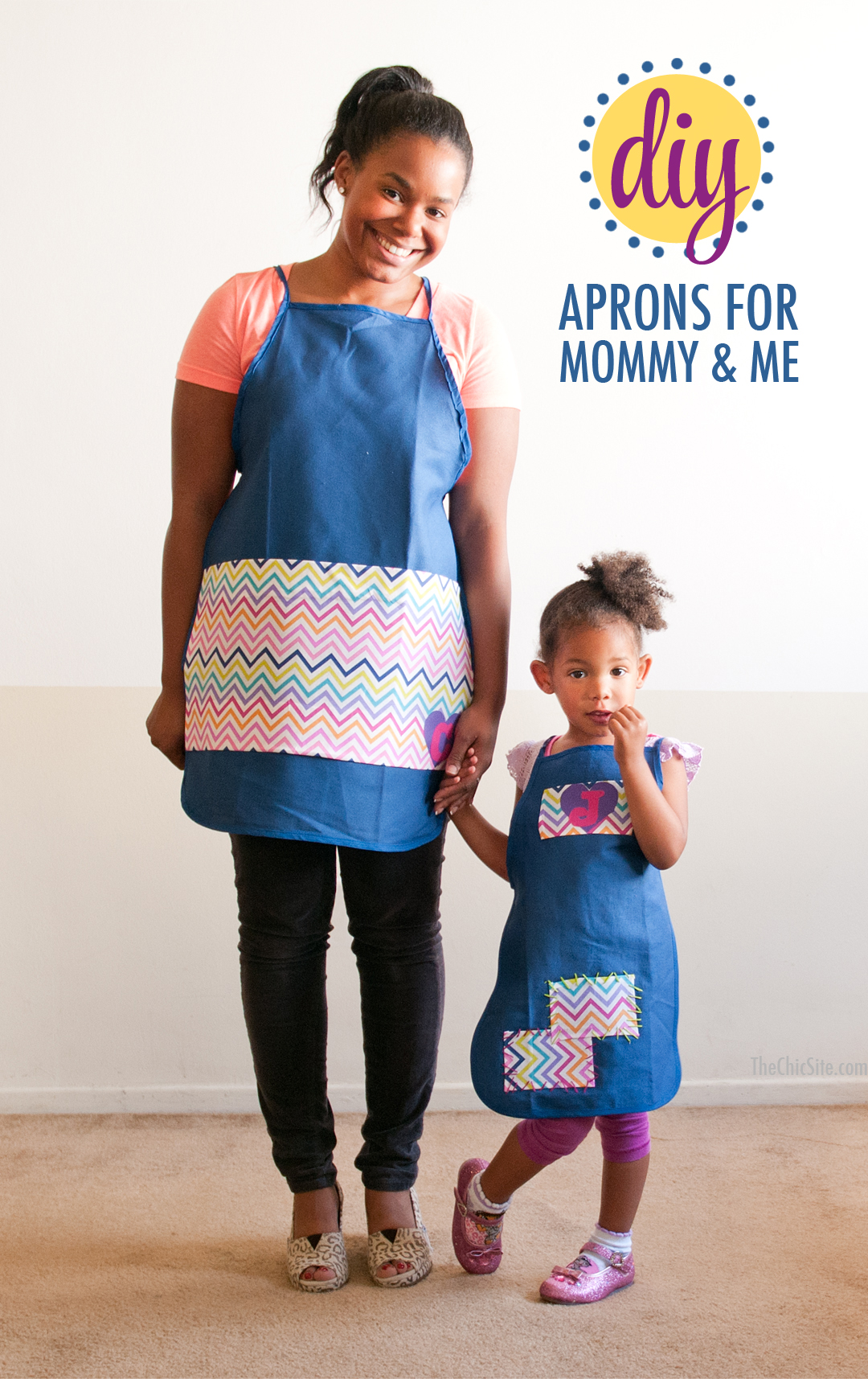 Mother’s Day is this weekend and there’s a chance you’ve seen a million and one mother’s day gift guides already but we really wanted to give you an option under the DIY category. This is the kind of gift that grandma might make for her daughter and grand daughter, or an auntie might make for her sister. It’s DIY Mommy and Me Aprons and it’s so easy anyone can pull it off in time for Sunday! ~Rachel