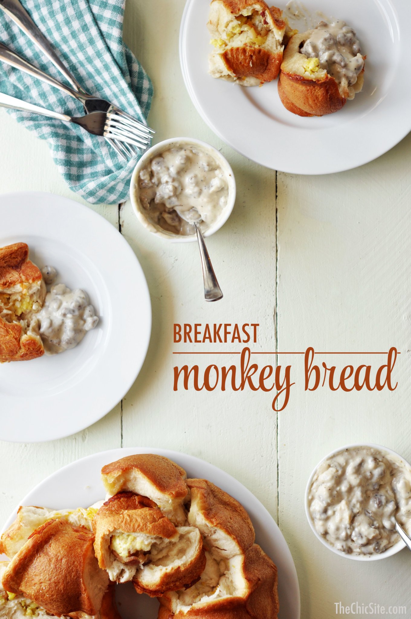 - To make the gravy: Melt a tablespoon of butter in a small pot. Heat the sausage through and add the flour. Stir and cook for a few seconds. Whisk in the milk and cook until the mixture has thickened. Season with salt and pepper. Serve alongside the monkey bread as a dipping sauce. Enjoy!