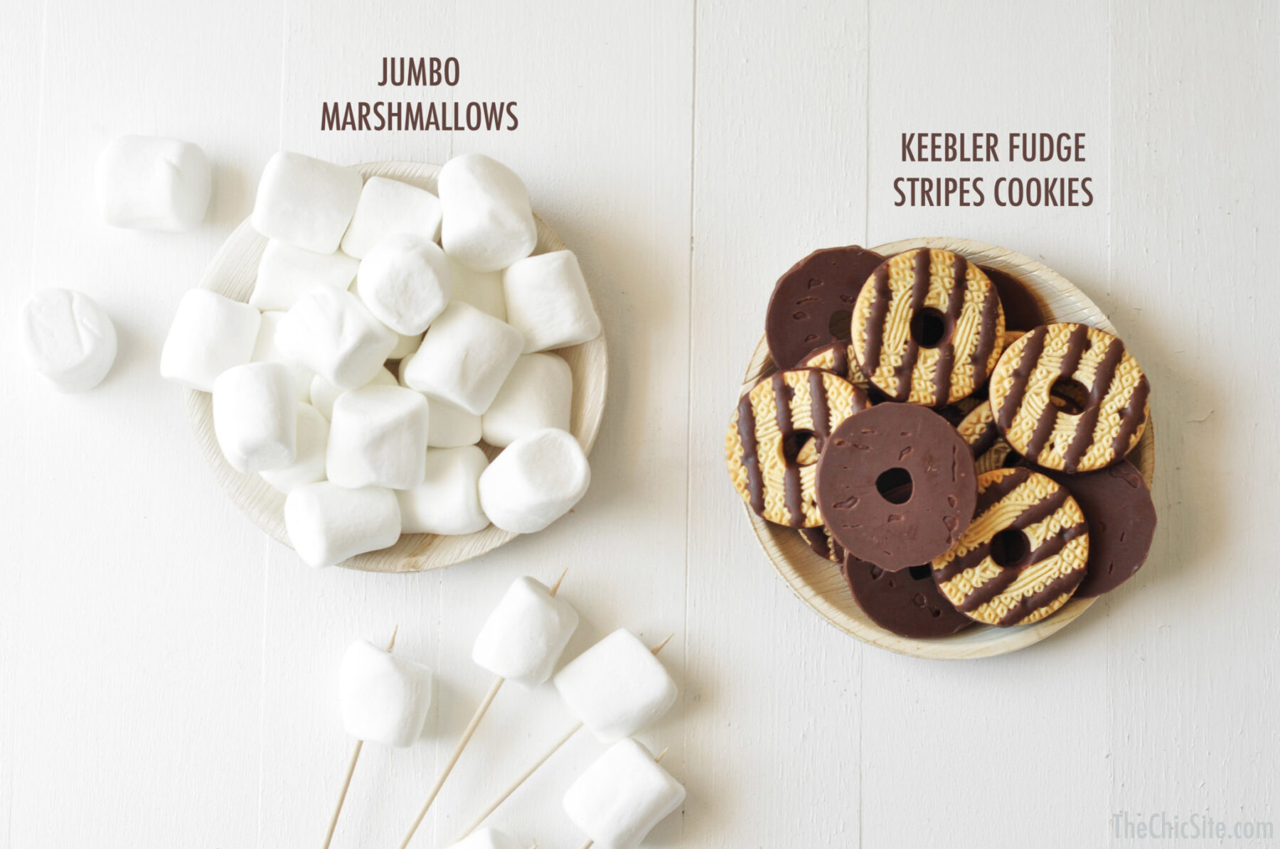 - Sandwich two fudge stripes cookies together with the hot marshmallow in the center. Eat right away. Enjoy!