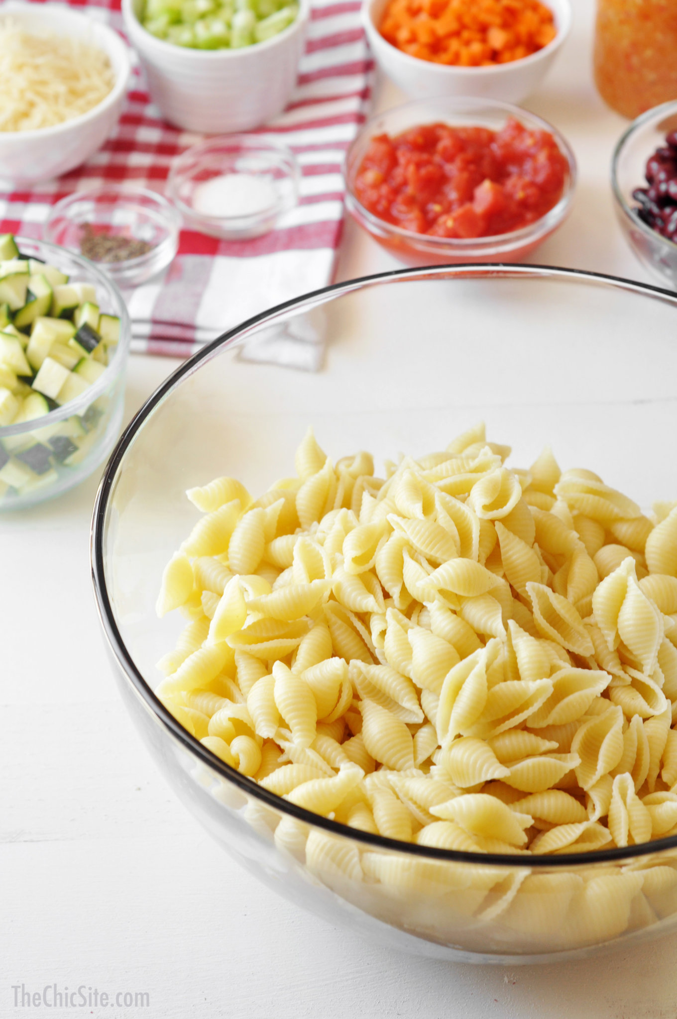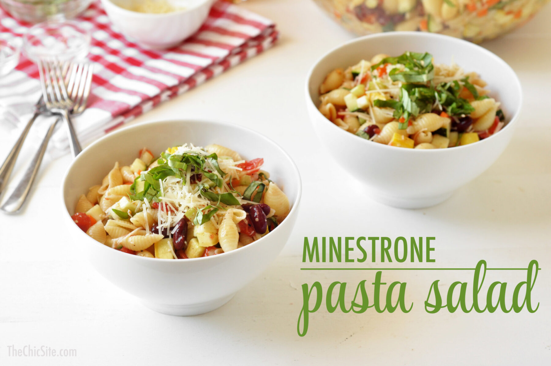 One of my favorite soups is a minestrone. I love all the veggies and pasta in it, so I thought it would be a great idea to turn that soup into a summer side dish! Minestrone Pasta Salad has all the great flavors from the original dish, and it’s super easy to make.
