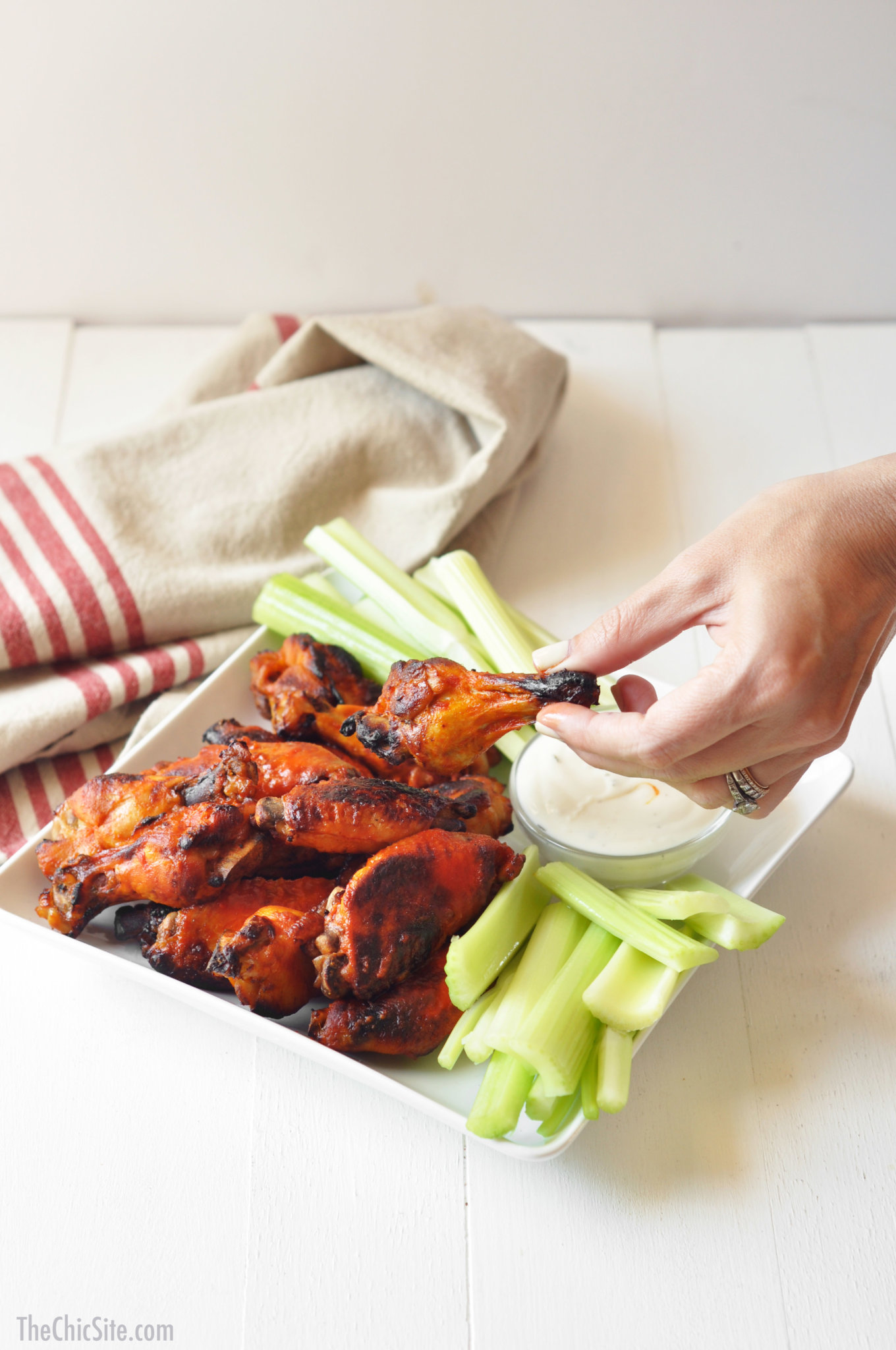 Serve the wings with a bowl of ranch or blue cheese dressing to cool them off a bit, and don’t forget about the celery sticks because that’s just classic.