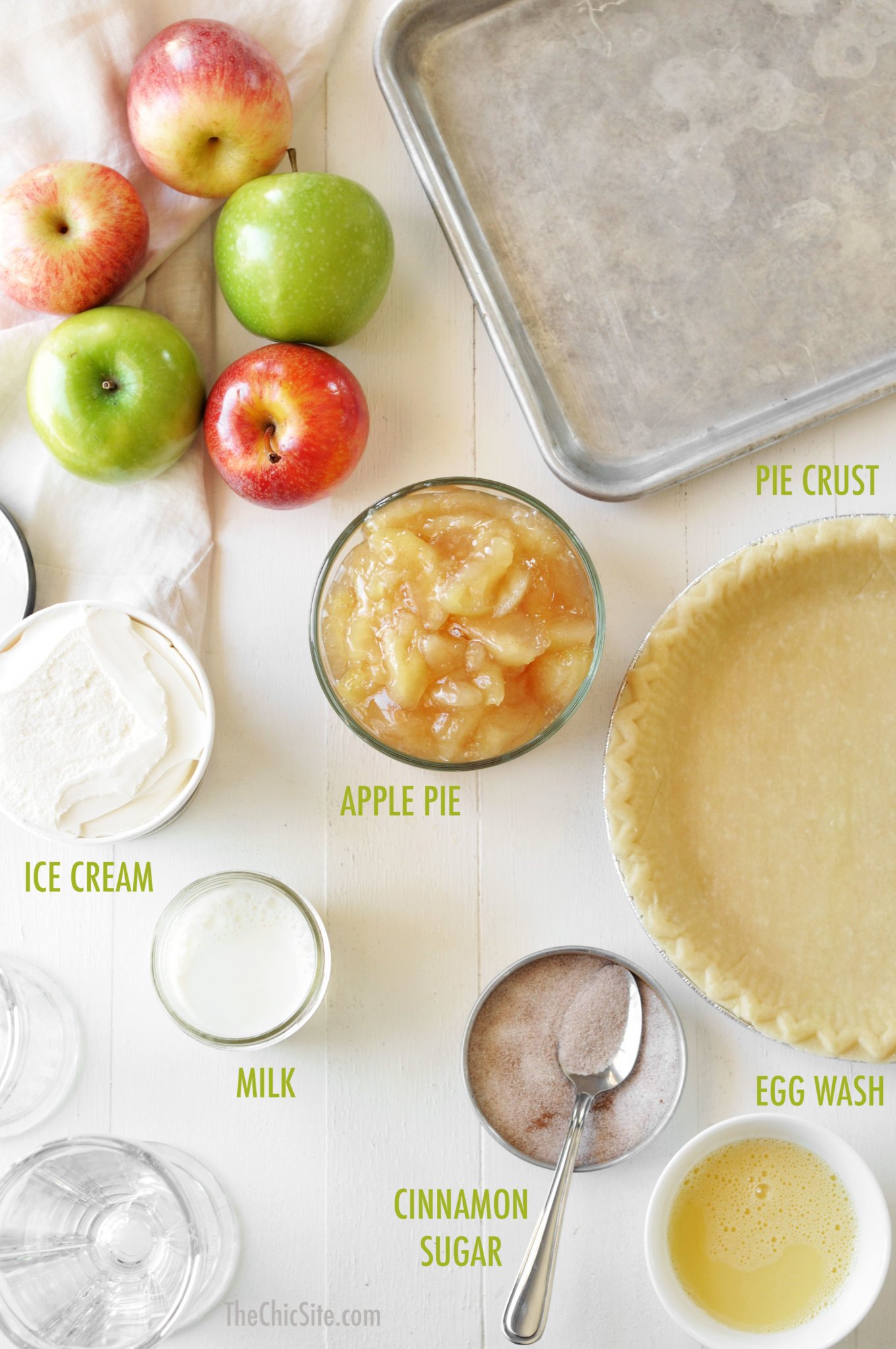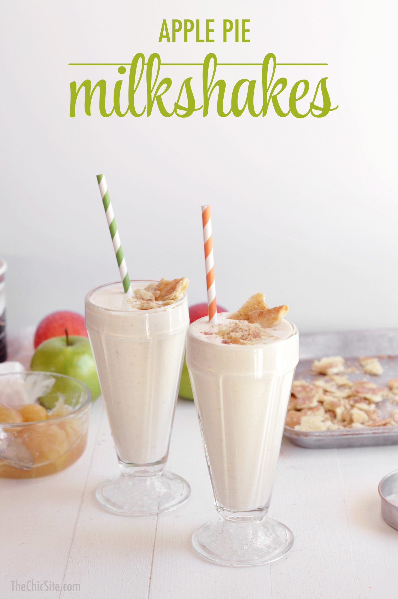 To make the milkshakes, combine vanilla ice cream, milk, apple pie filling and some of that crumbled crust in a blender. Blend until thick and smooth. If the milkshake appears to be too thick, add a splash more milk.