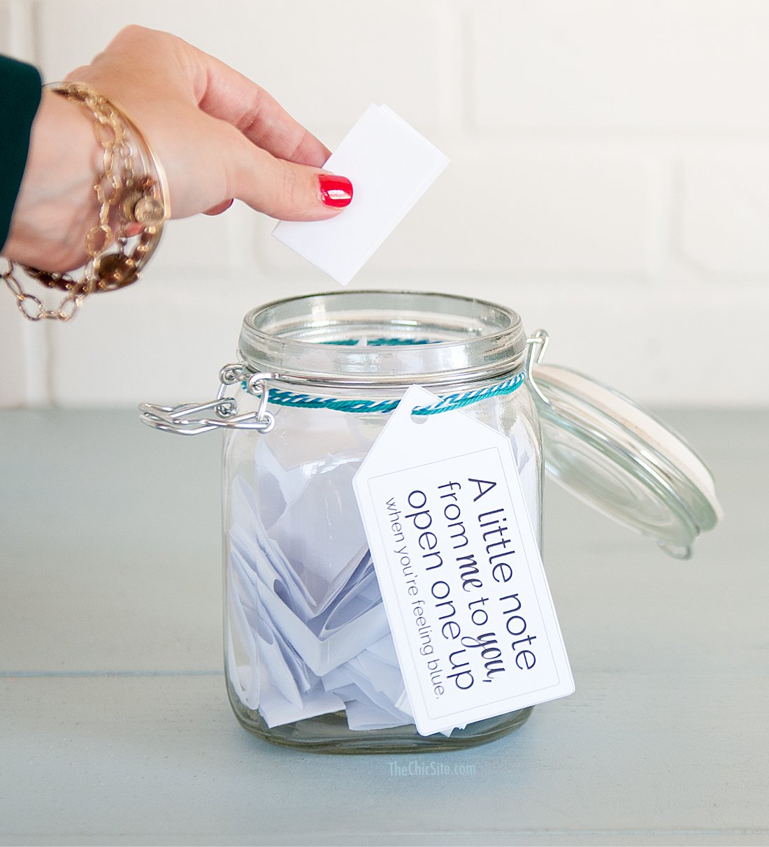 I saw this idea for DIY gifts somewhere online and I thought it would be the perfect gift for college kids. Going away for your freshmen year is exciting and new and also, a little scary and daunting. Fill a jar with inspirational sayings or sweet notes for your kids and encourage them to pull one out when they need a little boost or are homesick. Use our Free Printable to make your own jar and give it to someone who needs some encouragement. ~Rachel