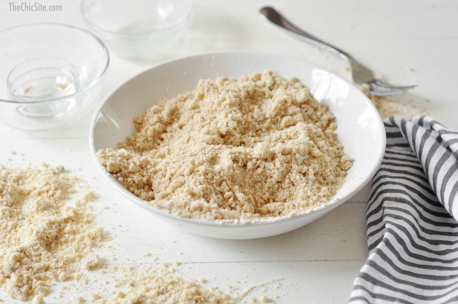 - In a medium bowl, combine all the ingredients for the crumb topping. Using your hands or a fork (or pastry blender) rub the butter into the dry ingredients until it resembles coarse crumbs. Set aside.