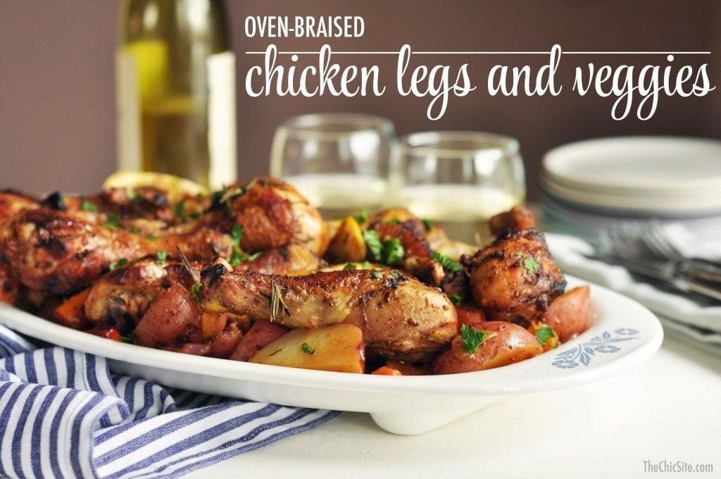 It’s winter and we’re looking for delicious, heart warming and comforting meals but without too much work. These Oven Braised Drumsticks with veggies is the perfect dinner that’s both filling and super tasty. Chicken legs are slow cooked in the oven with lots of hearty vegetables until soft and tender. What can be better?