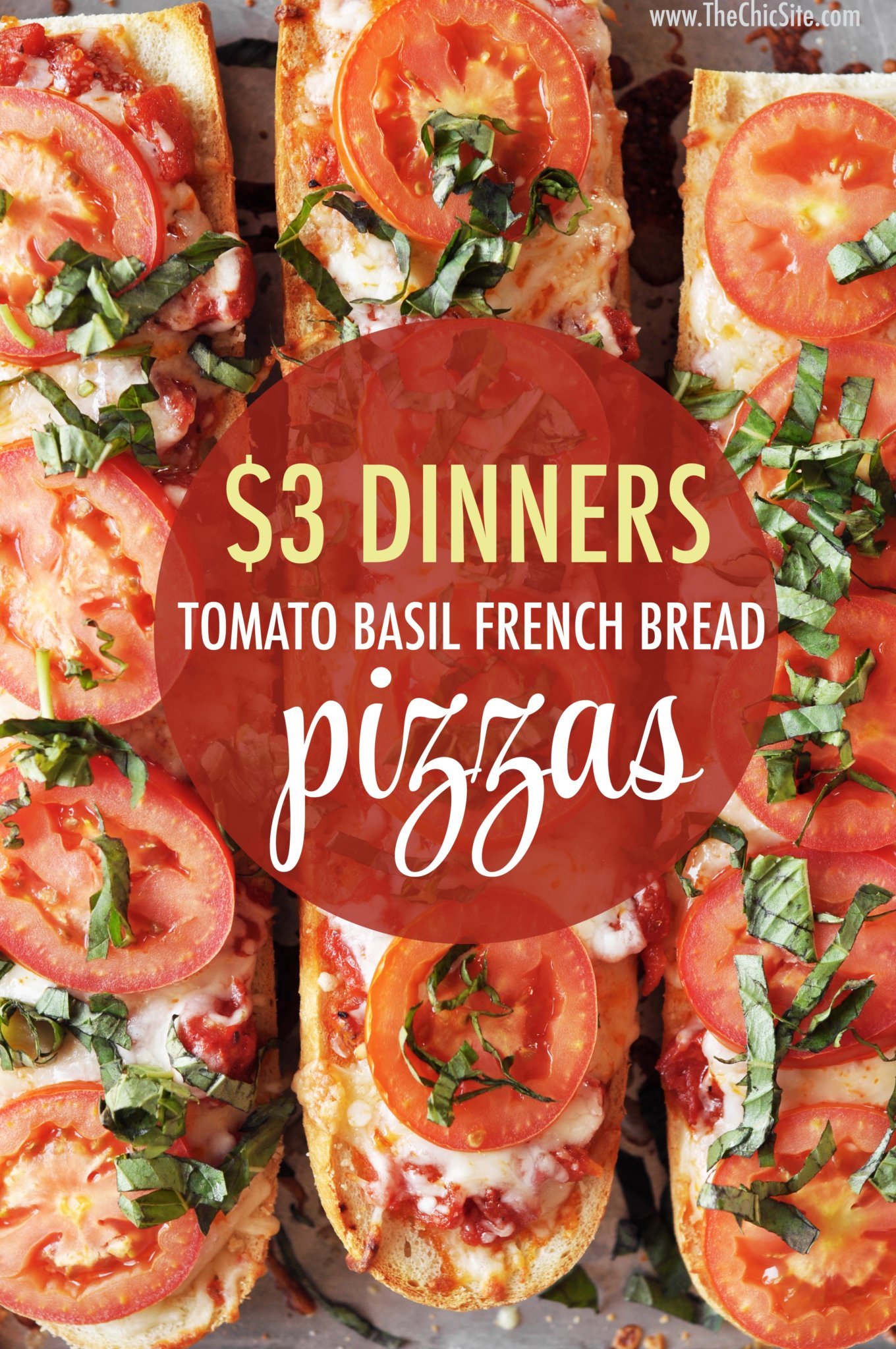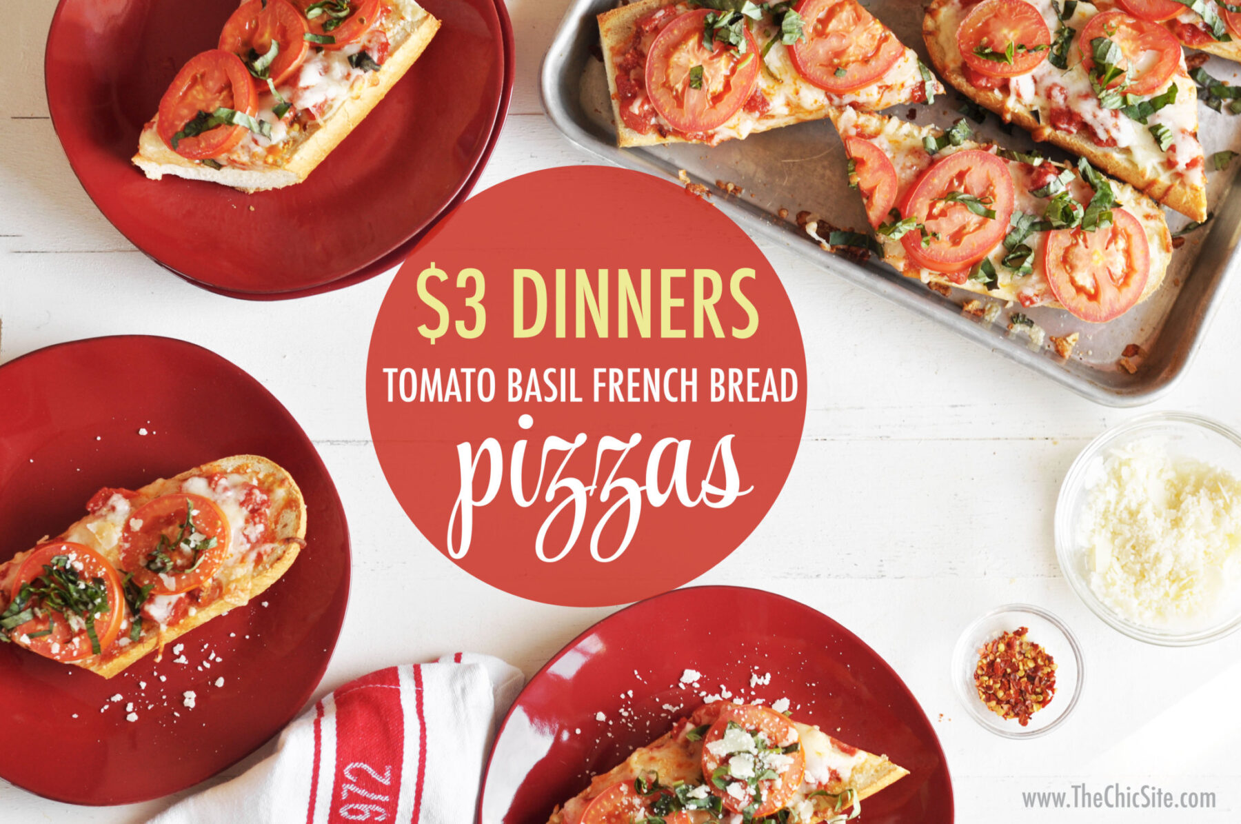 For this week’s $3 dinner I thought pizzas would be fun! After all, kiddos love pizza and when it’s a super simple version like this Margherita French Bread Pizza moms and dads love it too! ~Rachel