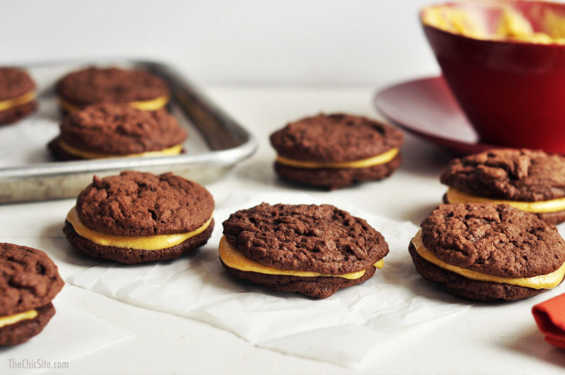 With Thanksgiving around the corner we’re constantly looking for new and exciting recipes to try out. Often times though, we get stuck in a rut and stick to the traditional. We end up cooking and baking the same things over and over again for Thanksgiving. So why not step out of your comfort zone with these delicious Pumpkin Chocolate Cookie Sandwiches! They have the same classic flavors we’re looking for during this time of year, but are still something new and exciting!